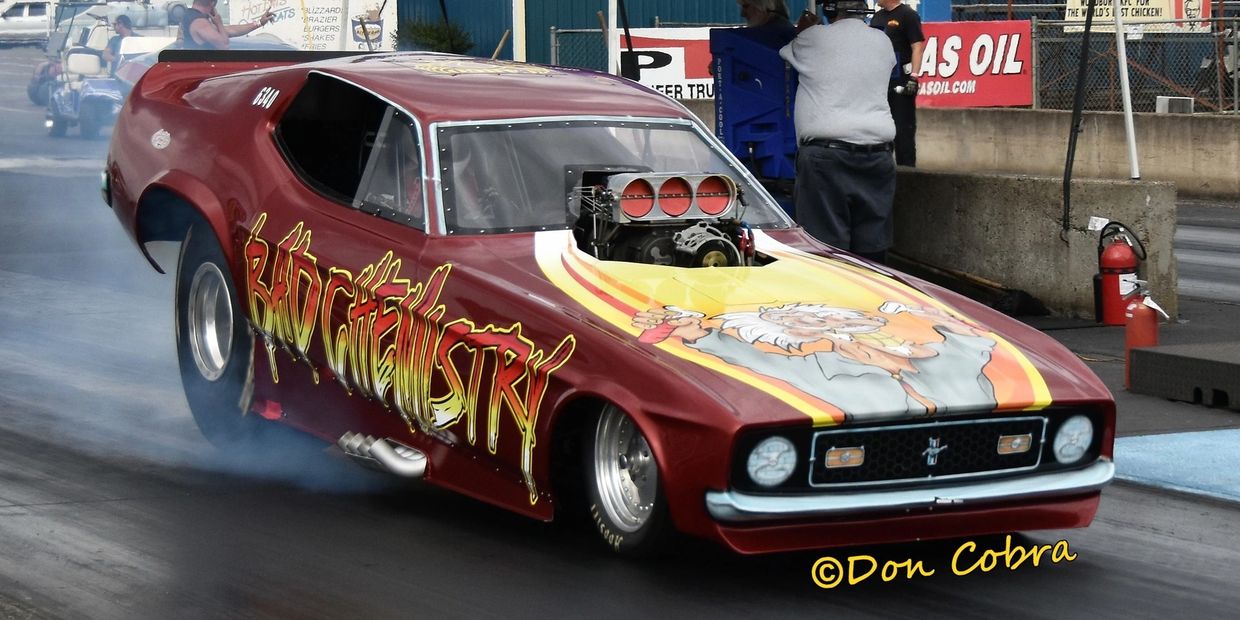 Starting back in 1978 with his street car-the one he uses as his tow vehicle today- he’s no stranger to racing. Today he’s running a 1972 Mach 1 Mustang funny car with a 526 ci Brad Anderson Hemi under the flopper. With 40 years of experience racing, he is a force to be reckoned with and his sponsors: Syngenta Seed Care, Pro Muffler and Brake, and Jones Truck and Implement company help keep him on the track. When he’s not racing, Royce likes to go boating, hang out with his grandkids or work on his farm.